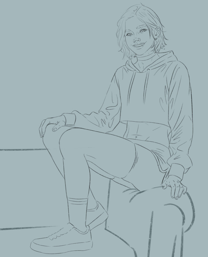 First Sketch to adjust anatomy and posture
